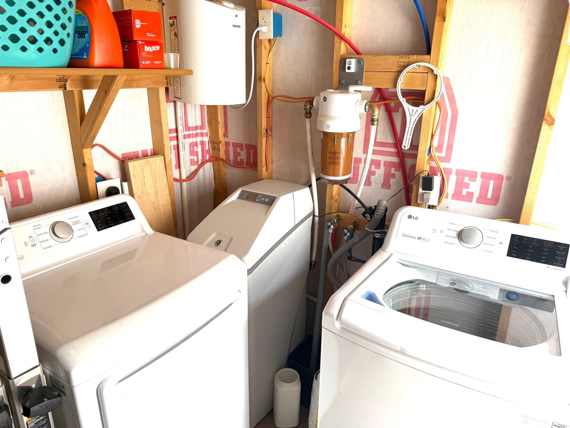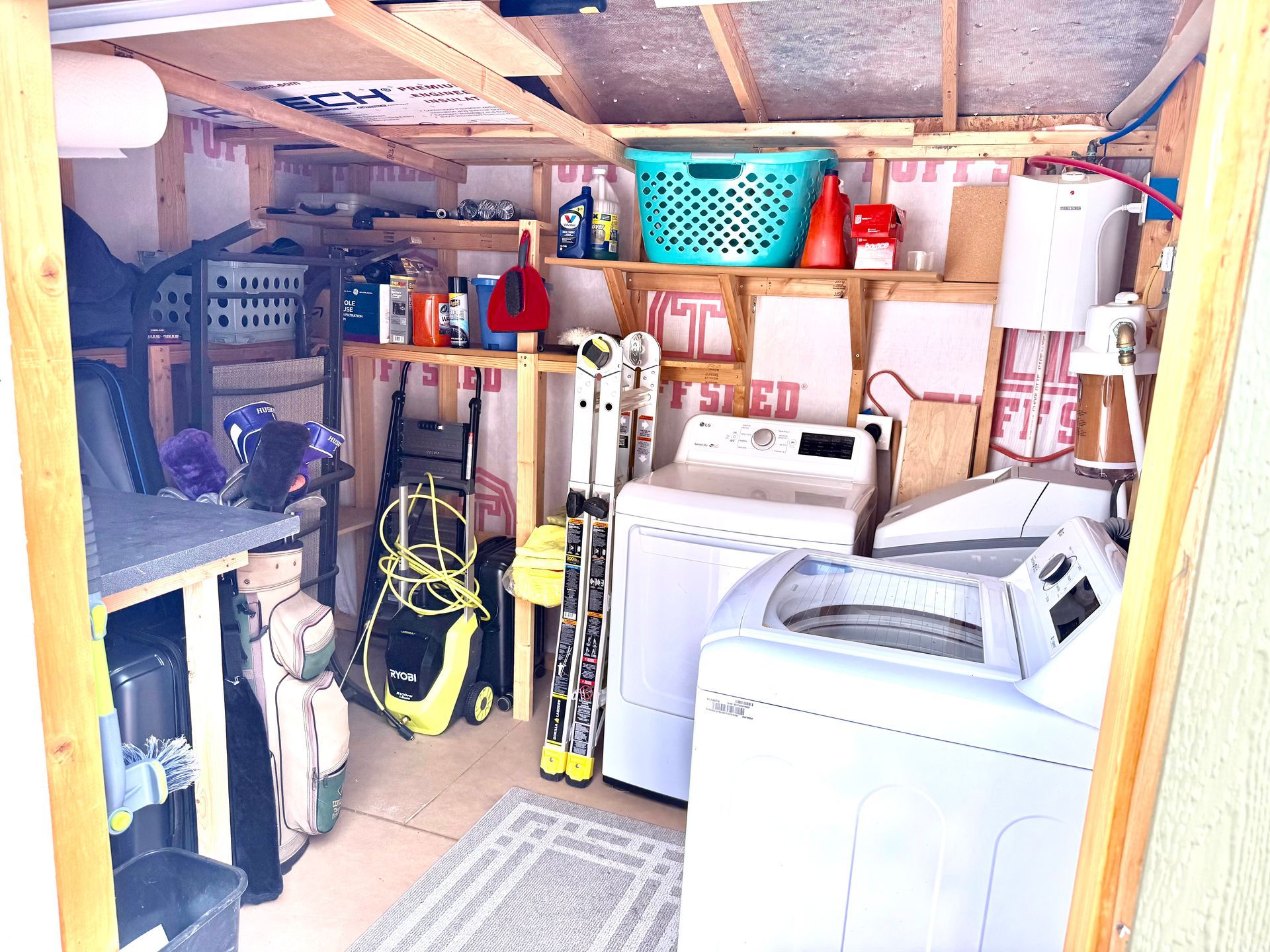 10x10 Tuff Shed with full size washer and dryer also included is a water softener and water heater