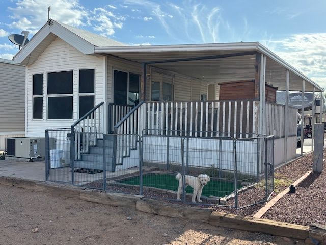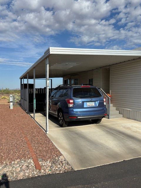 One Bedroom, One Bath Park Model with 14 x 14 open deck with enclosure for full size washer and dryer. The roof has just been recoated. Partially furnished inside and patio furniture on deck included